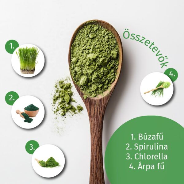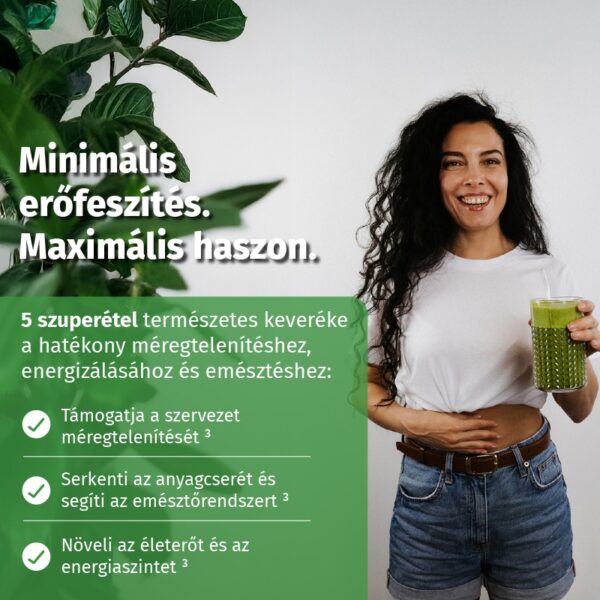 A zöld szuperélelmiszerek természetes erejével segíti a szervezetet a nehézfémek eltávolításában, támogatja a méregtelenítési folyamatokat, az emésztést és az emésztőrendszer működését.