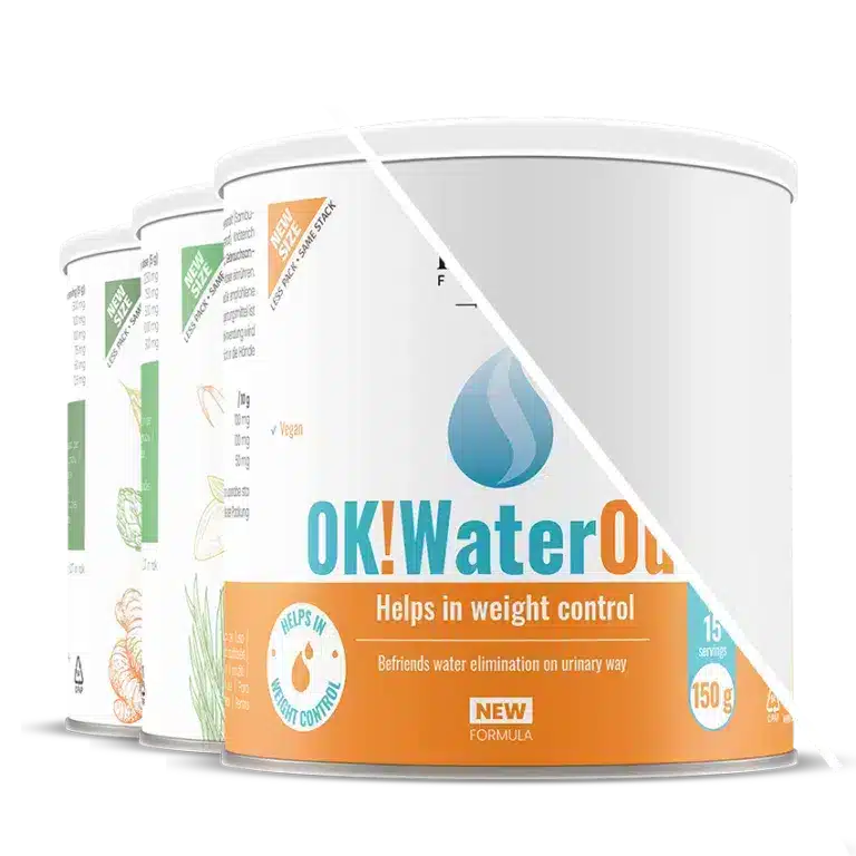 A következő 15 napban adjon 2 mérőkanál (10 g) OK!WaterOut-ot egy pohár vízhez reggeli után, keverje el, és igya meg.