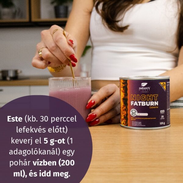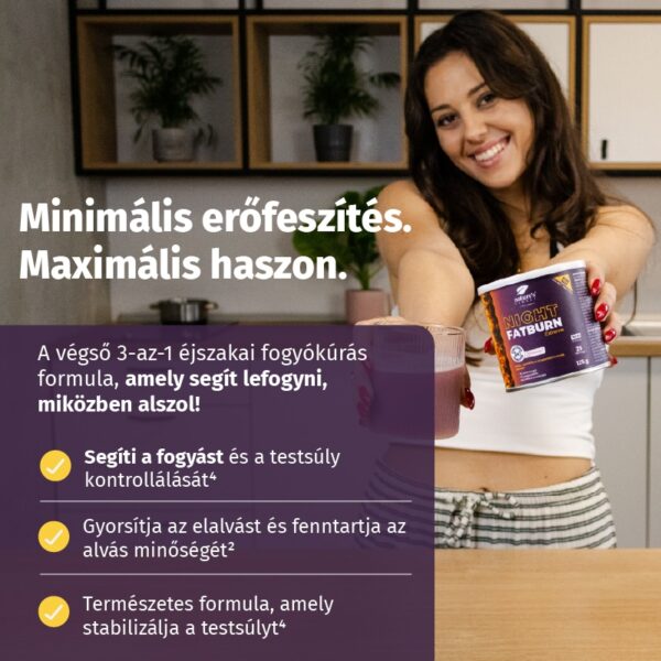 Sok tényező akadályozhatja a fogyást – az étrend, a mozgás és az anyagcsere is szerepet játszik. A Night FatBurn Extreme úgy lett kialakítva, hogy támogassa a tested természetes folyamatait, amelyek az éjszakai fogyást és az energiametabolizmust segítik. Tartalmaz továbbá olyan összetevőket, amelyek elősegítik a relaxációt és az alvás minőségét, ami tovább javíthatja a testsúlykezelést.