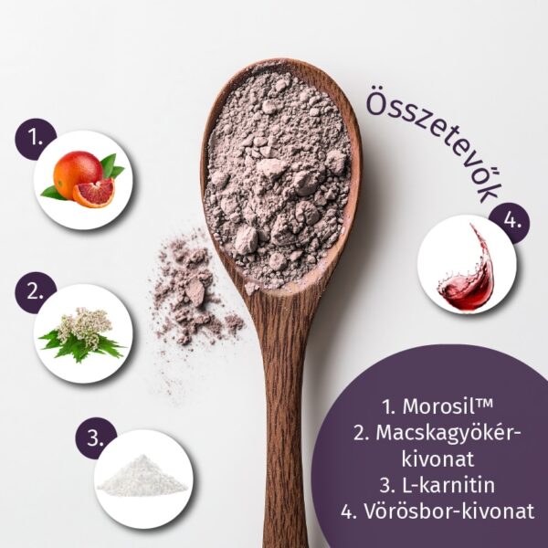• A szabadalmaztatott Morosil® formula macskagyökér-kivonattal és L-karnitinnel:
