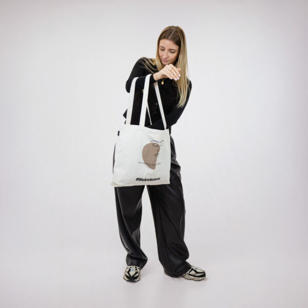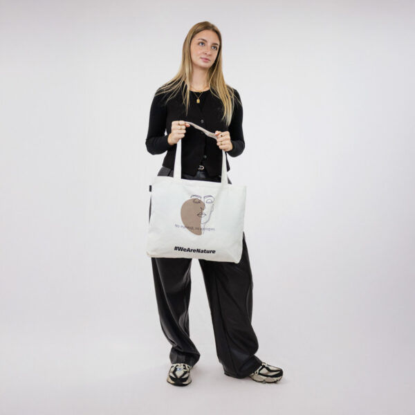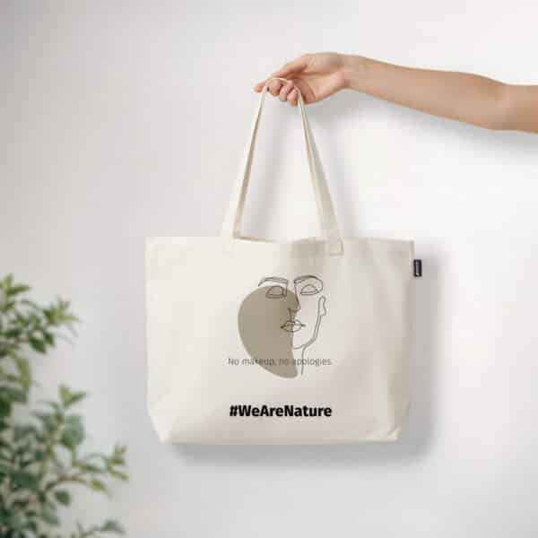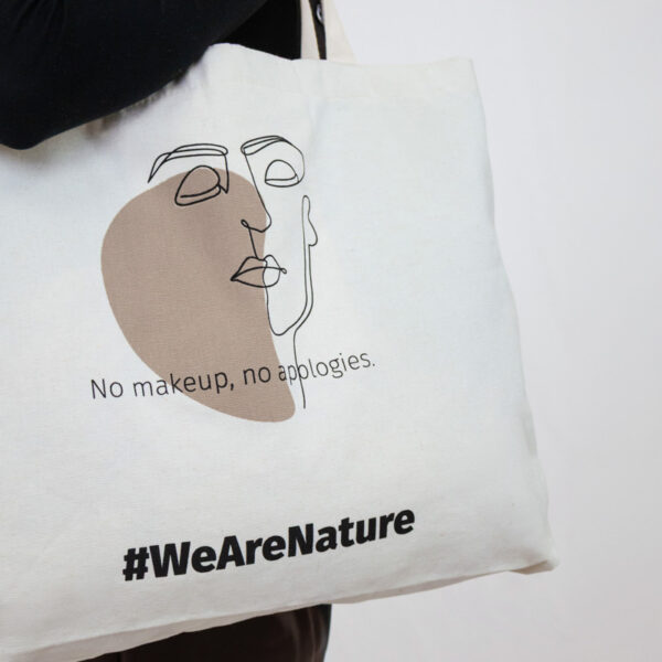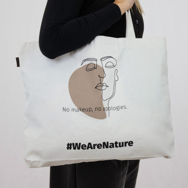 Időtlen tote táska, amely a hitelességet és az önkifejezést ünnepli. Egy nyugodt arc minimalista vonalrajzával díszítve, bátran viseli az „No makeup, no apologies” üzenetet, és arra ösztönöz, hogy vállaljuk természetes önmagunkat.