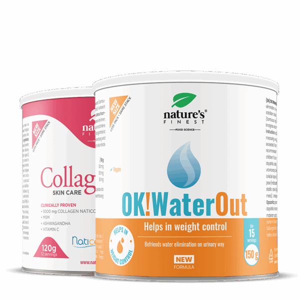 Az első 15 napban keverjen 2 mérőkanál (10 g) OK!WaterOut ananász ízű italt egy pohár vízbe reggelente. Ezután a következő 12 napban délután vagy este keverjen 2 adagolókanál (10 g) SkinCare Collagen-t egy pohár vízbe, hagyjon 2 percet, hogy a kollagén teljesen feloldódjon, majd igya meg. Az ital kellemes eper ízű. 10 g porral 5 g Naticol kollagén peptidet fogyasztasz.